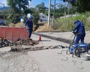 Operarios del área de Fontanería realizan actividades de limpieza de sumidero sobre la carrera 27 del barrio Yariguies II. APC MANANTIALES DE CHUCURI, ¡EMPRESA DE TODOS! #Acueducto #alcantarillado #aseo