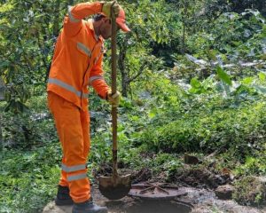 Personal operativo realiza labores de inspección, destape y limpieza de pozo de agua negras