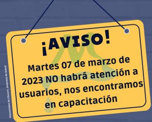 INFORMAMOS A TODOS NUESTROS USUARIOS QUE POR POR TEMAS DE CAPACITACIÓN AL PERSONAL DEL ÁREA ADMINISTRATIVA DE LA EMPRESA, NO HABRÁ ATENCIÓN A USUARIOS EL DÍA MARTES 06 DE MARZO DE 2023