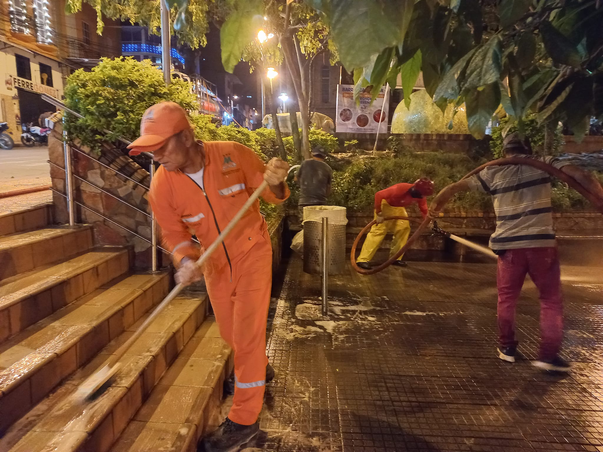 Durante la noche de ayer lunes 05 de diciembre, cuadrilla de ESCOBITAS realizaron apoyo a la actividad de lavado y limpieza del parque principal de nuestro municipio como iniciativa de embellecimiento por la celebración de las Ferias y Fiestas No. 64 de San Vicente de Chucuri.