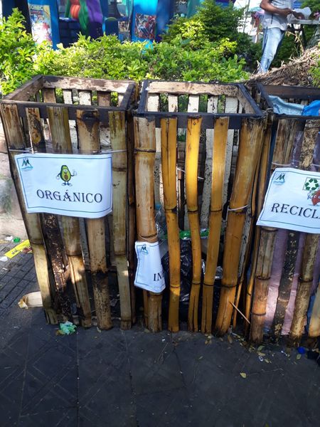 Hoy encontramos en éste pésimo estado las cestas hechas de manera artesal y que fueron instaladas la rededor del parque principal para que las personas depositaran los residuos generados.