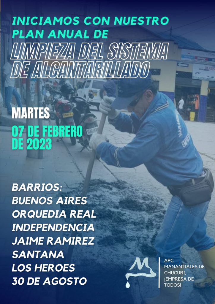 Daremos inicio a nuestro PLAN ANUAL DE LIMPIEZA AL SISTEMA DE ALCANTARILLADO para lograr su correcto funcionamiento, evitando colapsos y atascos que puedan provocar un desbordamiento de las aguas residuales o de la lluvia.