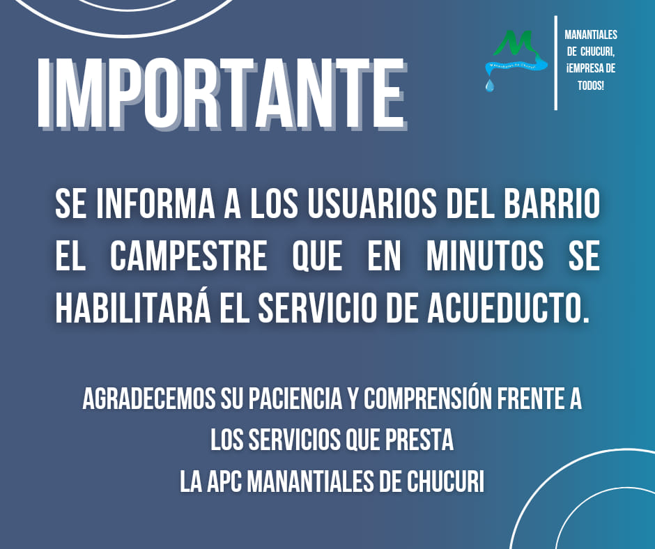 En minutos se habilitará el servicio de ACUEDUCTO en el barrio EL CAMPESTRE. 15 febrero, 2023 Auxiliar Administrativo Noticias