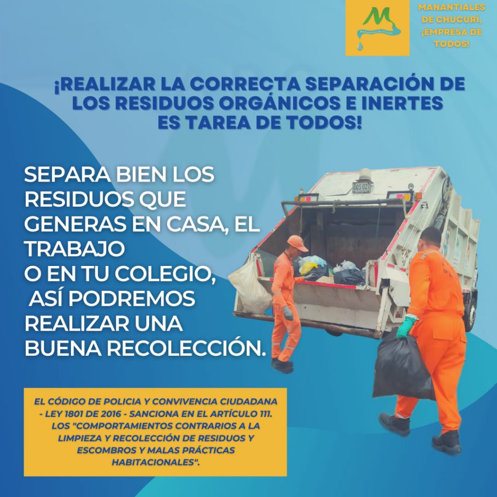 Recuerda emplear las buenas prácticas de separación en la fuente para disponer el residuo correcto que corresponda al día de recolección.