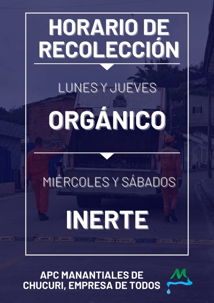 Hoy MIÉRCOLES realizamos la recolección de los RESIDUOS INERTES. Pedimos a los usuarios de los barrios BUENOS AIRES, ORQUÍDEA REAL, LA INDEPENDENCIA, JAIME RAMIREZ, 30 DE AGOSTO, SANTA ANA, LOS HÉROES que por favor, realicen la disposición de los residuos a tiempo para evitar desorden y la posible no recolección de los residuos.