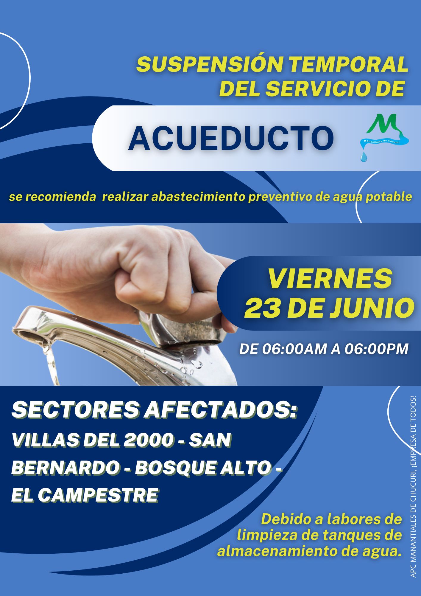 SUSPENSIÓN DEL SERVICIO DE ACUEDUCTO – VIERNES 23 DE JUNIO DE 2023