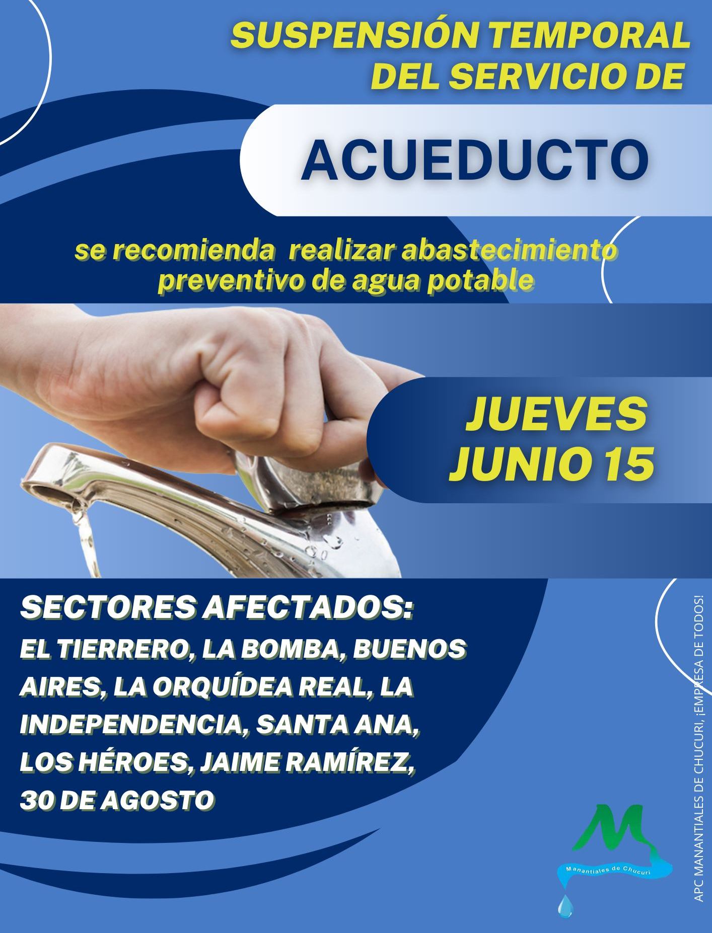 SUSPENSIÓN TEMPORAL DEL SERVICIO DE ACUEDUCTO – REVISA LOS BARRIOS AFECTADOS