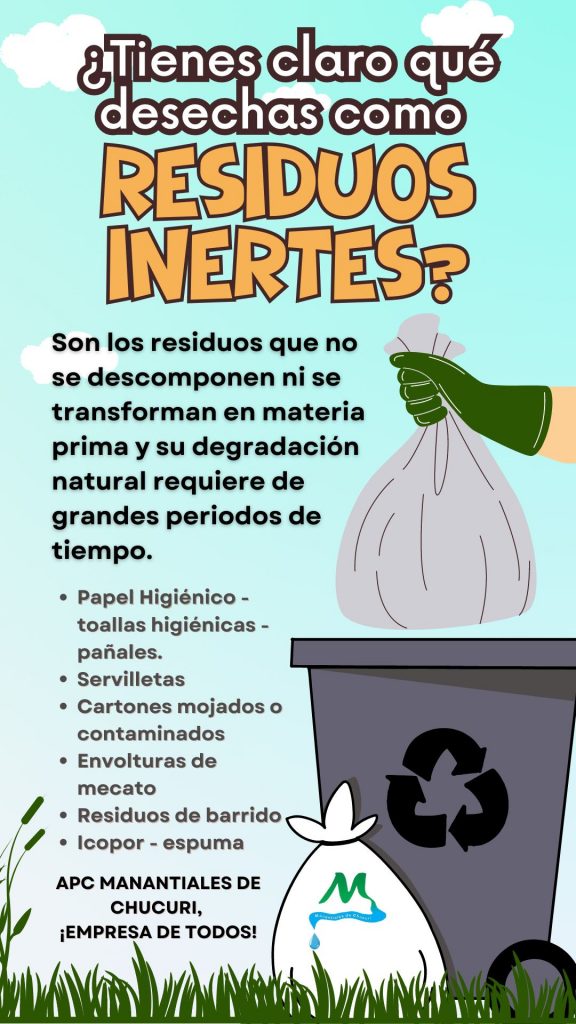Aquí de explicamos un poco sobre los residuos sólidos inertes, recuerda que su horario de recolección son los MIÉRCOLES y SÁBADOS a partir de las 06:00a.m.