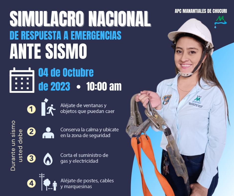 Hoy, entidades públicas y privadas de todo el país se participan en el SIMULACRO NACIONAL ANTE RESPUESTA A EMERGENCIAS y en el cual se pretende mejorar la planeación, coordinación y comunicación para la respuesta efectiva frente a eventos, en nuestro municipio el tema de este año será SIMULACRO ANTE SISMO.