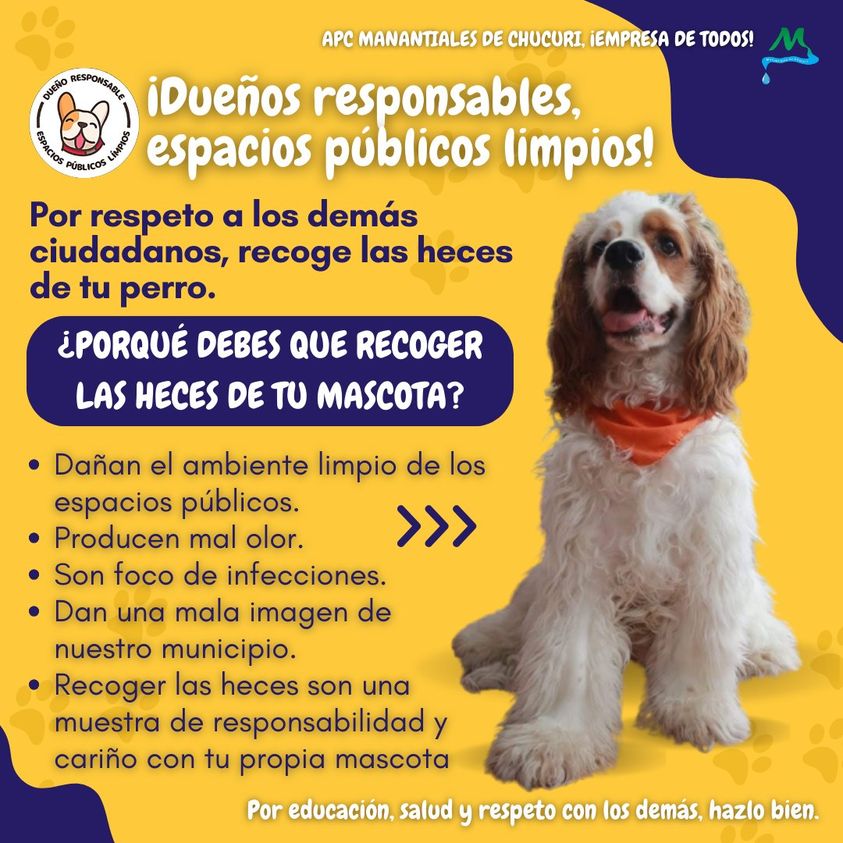 Recuerda siempre recoger los excrementos de estos animalitos y depositarlos en tu contenedor de residuos sólidos inertes (Recolección Miércoles y Sábados).