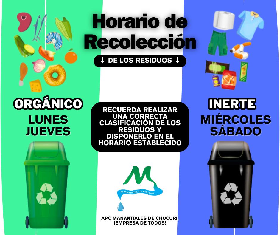 Recuerda el horario establecido para la recolección de los residuos Sólidos en el sector urbano de nuestro municipio.