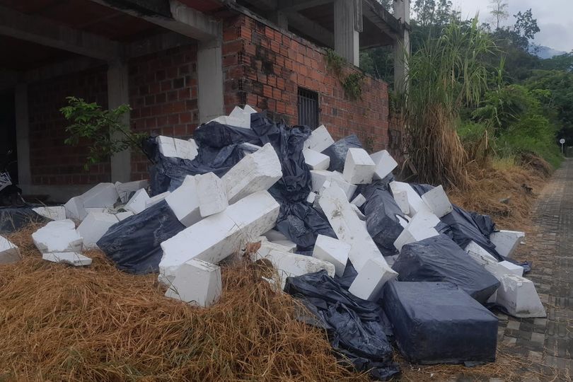 Sobre la vía circunvalar del barrio SAN BERNARDO se ha dejado un cúmulo de poliestireno expandido o icopor a la intemperie.