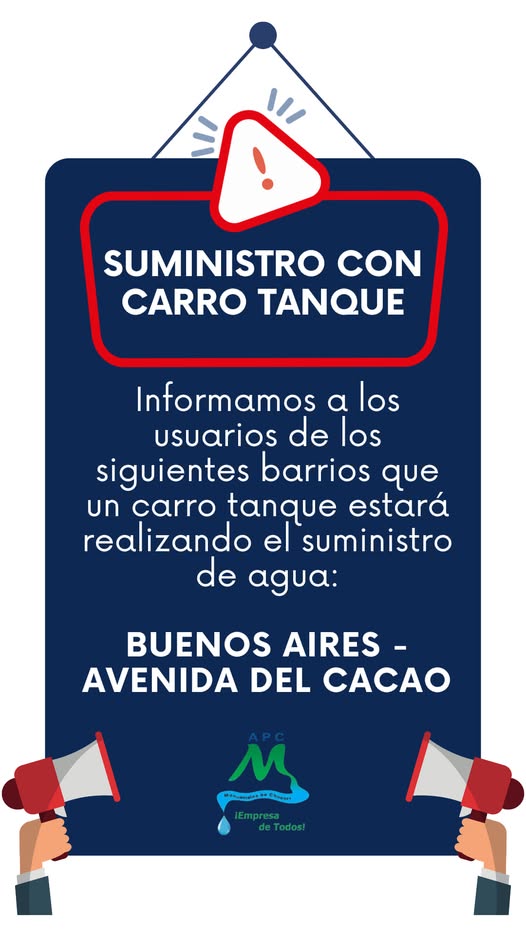 ATENCIÓN USUARIOS DEL BARRIO BUENOS AIRES 16 noviembre, 2024 Auxiliar Administrativo Noticias APC MANANTIALES DE CHUCURI, EMPRESA DE TODOS#Acueducto #alcantarillado #aseo