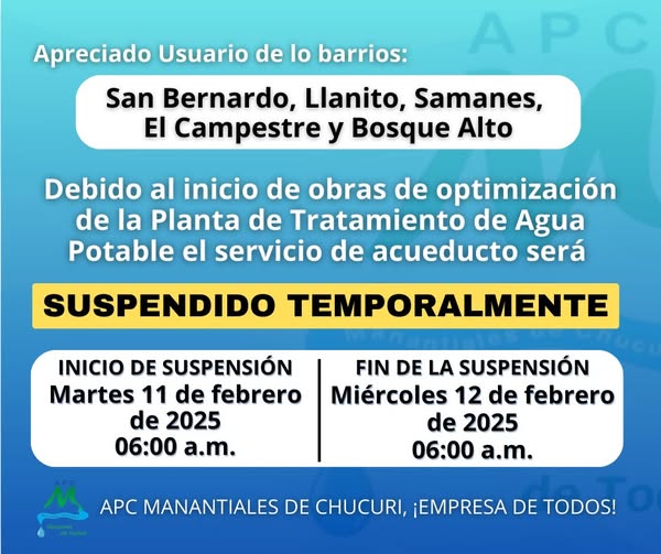 INFORMACIÓN IMPORTANTE: Usuarios de los barrios: San Bernardo, Llanito, Samanes, El Campestre y Bosque Alto.