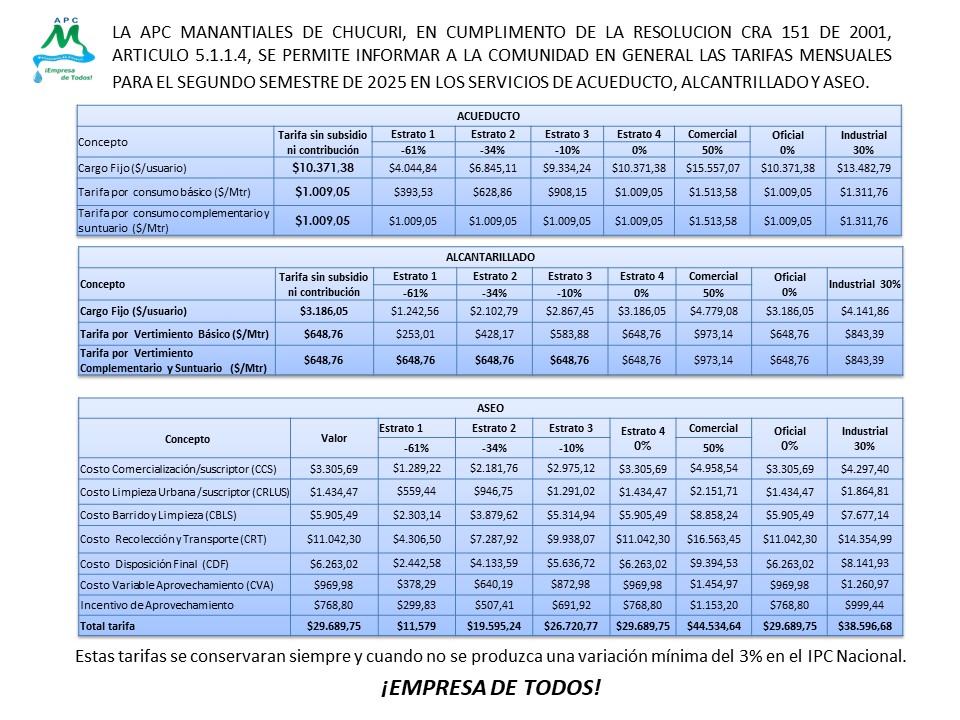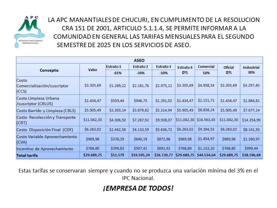ACTUALIZACIÓN TARIFARIA PARA EL SERVICIO PÚBLICO DE ASEO SEGÚN ACTUALIZACIÓN DEL IPC – 2025