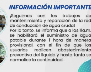 USUARIOS BARRIO EL CAMPESTRE Y BOSQUE ALTO.Se informa a los usuarios de los barrios mencionados que debido a daño en la red que bombea el agua potable a los tanque