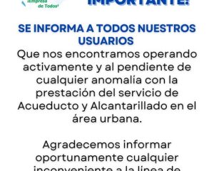 Que nos encontramos operando activamente y al pendiente de cualquier anomalía con la prestación del servicio de Acueducto y Alcantarillado en el área urbana