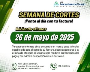 Iniciamos con la suspensión de serviciosRecuerda realizar el pago de tu factura en los tiempos señalados y/o acércate a nuestra oficina Atención a Usuarios.Líneas de atención: Atención a Usuarios:315 2528045