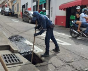 Continuamos con los trabajos de LIMPIEZA DE LA RED DE ALCANTARILLADO y sumideros, hoy desde el barrio BUENOS AIRES sobre Calle 15A – Carrera 17B.