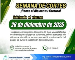 Iniciamos la semana de cortes, recuerda realizar el pago de tu factura en los tiempos señalados y/o acércate a nuestra oficina Atención a Usuarios.Líneas de atención: Atención a Usuarios:315 2528045