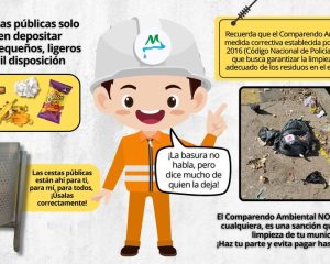 Las cestas públicas están destinadas únicamente para residuos pequeños y livianos; usarlas correctamente ayuda a conservar el orden, la salud y una mejor convivencia.Recuerda que el Comparendo Ambiental es una